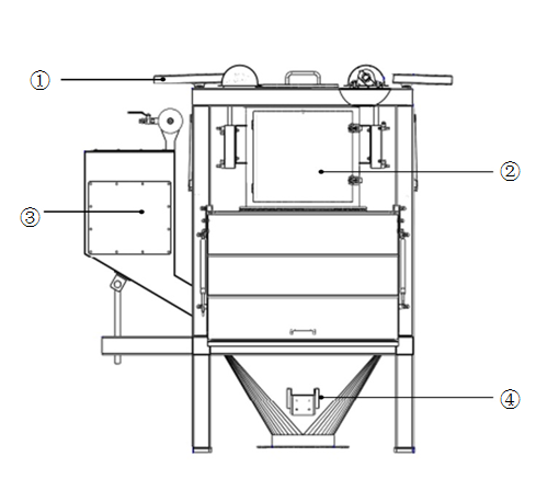 ①拍打裝置   ②受料倉組件   ③收塵組件   ④投料站倉體